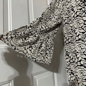 John Paul Richard Textured Floral Bell Sleeve, Black/Cream Blouse with Lace.