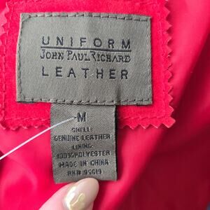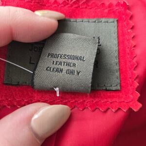 True red genuine leather suede 3 button blazer with long sleeves and full polyester lining. Excellent condition!