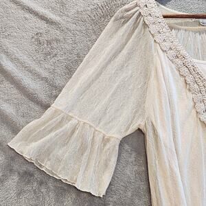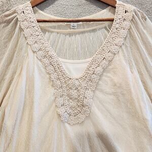 John Paul Richard Vintage Womens Cream Lace Crochet Layered Blouse Size Large