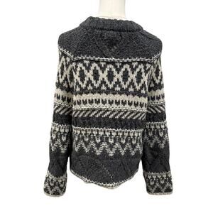 John Paul Richard Women Sweater Gray White Fair Isle Knit Roll Neck Pullover L