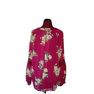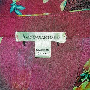John Paul Richard Womens Blouse Multicolor Size Large Sheer Sangria Flor…