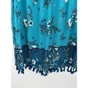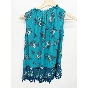 John Paul Richard Womens Blue Floral Sleeveless Tank Loose Top Tassel Size Small