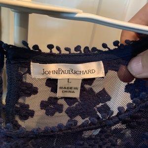 Lovely piece in brand new . Runs a tad big. Beautiful lace detailing and sleeve embelkushment
