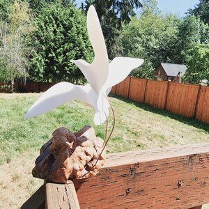 About: The birds are molded in Polymer, a proprietary compound of resins that is similar to translucent Bisque porcelain, but more durable. Mounted on an impressive polished burl-wood base. The supporting wires are flexible and can be bent to elevate the birds to your preference.