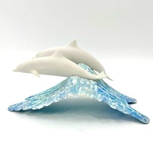 John Perry Design Dolphins On Blue Wave Sculpture 1999 Artist Signed Ocean Decor