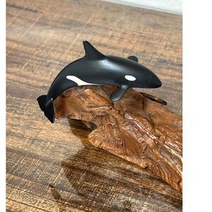 John Perry Orca Sculpture Burlwood Base Vintage Killer Whale Figurine Ocean Art