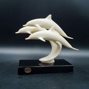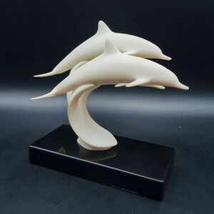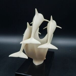 John Perry Sculpture Dolphin Family Off-White Statue Black Base Figure Figurine
