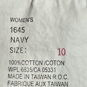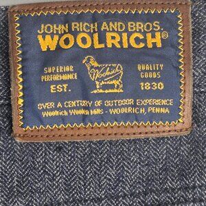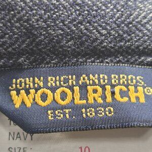 John Rich and Bros. Woolrich, 100% Cotton, Navy, 5 Pockets Style, Pants. Size 10. Two buttons in the front waist to adjust. Straight Leg. Gently used. No holes or stains. Smoke free home. Waist measures approximately 31". Rise measures 12". Inseam measures 29".