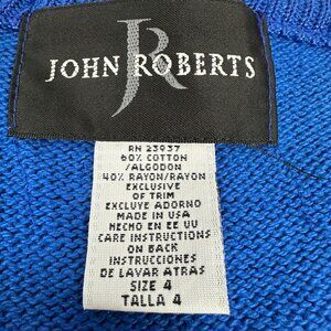 John Roberts Blue Cotton & Rayon Womens Cardigan Sweater Size 4