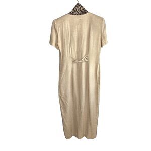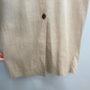 John Roberts VTG Linen Blend Dress Women's 6 Button Front 80s Scarf Beige Midi