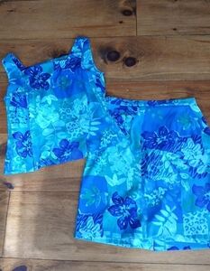 John Roberts tank and skirt set SZ 12, Blue/Green