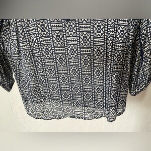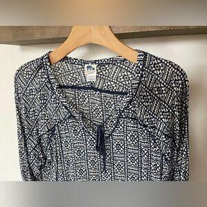 John Robshaw for Lucky Brand| Boho Geometric Pattern Navy Long Sleeve Blouse•••