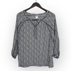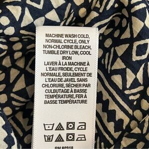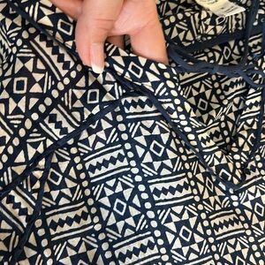 John Robshaw x Lucky Brand batik top, geometric pattern blue and white, sz M
