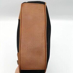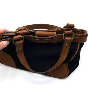 Vintage John Romaine black tan handbag. Zipper and magnetic closure. Canvas material and faux leather. Outside zipper pocket. Inside has 2 pockets and 1 zipper pocket. Very good condition with no tears. Please see last picture for 2 small marks on one side of the bag.