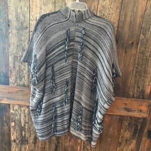 John Schultz OS Handmade Gray BOHO Tassle Kimono Western Funky Style Knit Cape