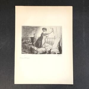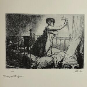 John Sloan "Turning Out the Light" 1930s Art Print Sketch Vintage Bed Woman Man