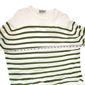John Smedley Darcy Top Green/White Stripe Lightweight Top - Size large
