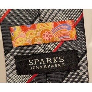 John Sparks Men’s Necktie Plaid red White Black Office Casual Spring NWT