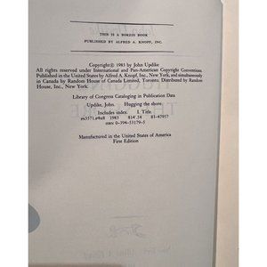 You are buying This first edition book, titled "Hugging the Shore" by John Updike. This is a must-have for any literary collector. The hardcover book was published in 1983 by Alfred A. Knopf and includes a dust jacket. The book is in its original form and has not been replicated. This book is perfect for those who appreciate classic literature and the art of collecting books. Lucky winner to pay for delivery confirmed mail. We ship within one day of payment and leave positive feedback after we get positive five star feedback. Contact us if you run in to any problems. We are a TOP seller as we offer only the highest quality at a decent price and ship lightning fast! You can also check us out on our Facebook page - Rare Collectibles.