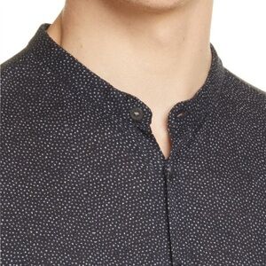 Spatter pattern button-up shirt band collar. Soft!