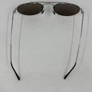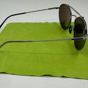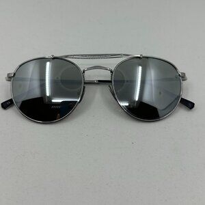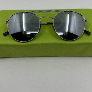 The Brand new John Varvatos V547 sunglasses are a pair of men's or unisex aviator-style shades with a metal frame and round plastic lenses. They feature a double "V" branding on the lens and temple tips. Frame sold with original case.