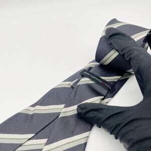 John Varvartos Star Luxe Men Blue Striped 100% Silk Necktie Made in USA