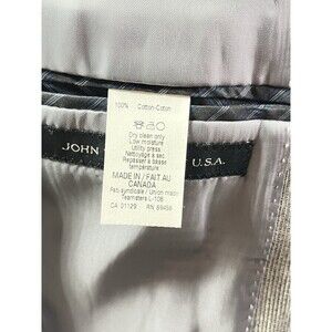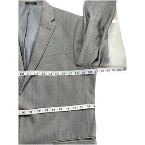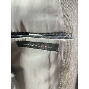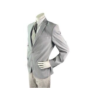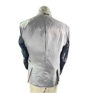 The John Varvatos Blazer Jacket is a stylish and versatile sport coat made from cotton with a polyester lining. This gray striped blazer features a notch lapel, four-button sleeve button style, and a double-vented back for a modern and sophisticated look. With a regular fit and size 40R, it is perfect for various occasions including travel, parties, casual events, and formal business meetings. The blazer also includes padded features and pockets for added comfort and functionality, making it a practical and fashionable choice for the discerning man.