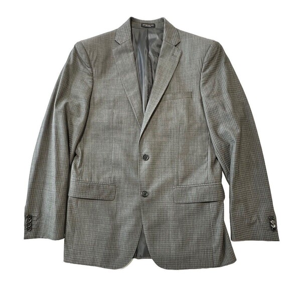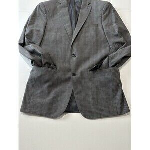 John Varvatos Blazer Sport Coat Men 40L Gray Wool Plaid Jacket Two Button USA