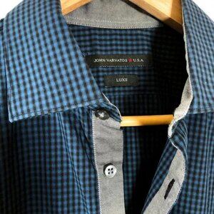 John Varvatos USA Luxe Blue Plaid Shirt Size: 15 1/2"