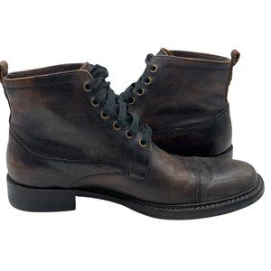 John Varvatos Brown Leather Lace Up Moto Cap Toe Ankle Boots Men’s Sz 8.5