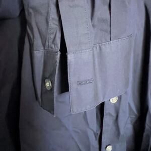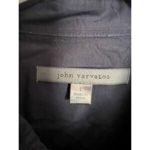 John Varvatos Button Down Dress Shirt Roll Tab Sleeve Large Navy Blue Cotton