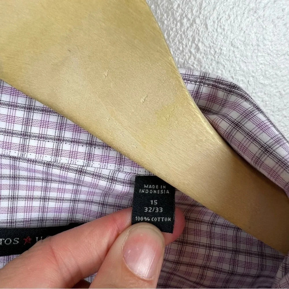 John Varvatos Button Up Dress Shirt Mens Size 15 32/33 Purple Check Slim Fit