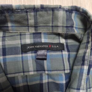 John Varvatos Button Up Shirt Men's Size M Plaid Green Long Sleeve Cotton Casual