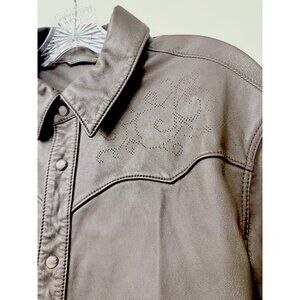 John Varvatos Chocolate Brown Leather Western Insp Sexy Shirt, Button/design