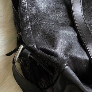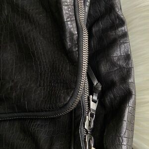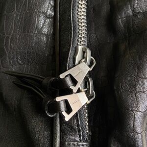 14"W X 16.5"H X 7"D, Croc-embossed leather, Imported; BLACK