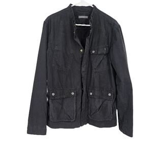 John Varvatos DOM Trucker Jacket Black Band Collar Snap Button Military Size 48