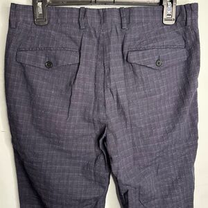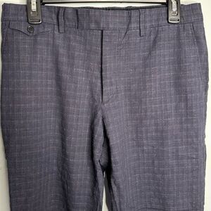 John Varvatos Dark Blue Wool Linen Blend Mercer Pants Euro Size 48. In very good preowned condition, no flaws.