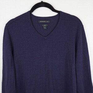 John Varvatos Luxe Merino Wool Sweater - Small - Navy Blue with Leather Elbow Pa
