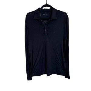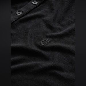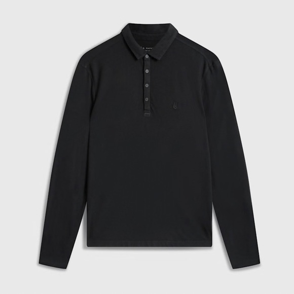 John Varvatos Marty Burnout Polo Long Sleeve Organic Cotton Peace Sign Black