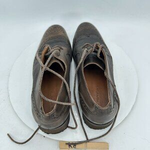John Varvatos Men Size 9.5M Brown Distressed Leather Brogue Wingtip Derby Shoes