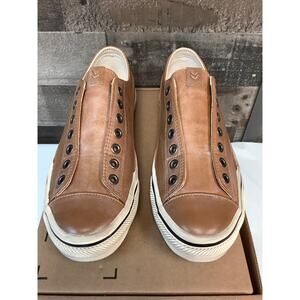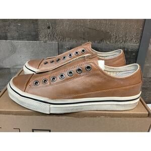John Varvatos Men's 7.5M Brown Vulc Leather Laceless Low Top Sneakers LH2-32