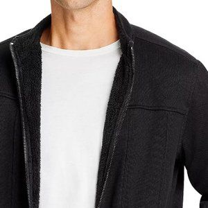 John Varvatos Men's Ben Zip Front Texture Knit Trucker Jacket Fleece Lined Black