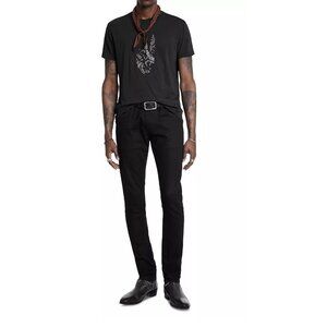 John Varvatos Men's Peace Sign Embroidery Burnout Fabric Crew T-Shirt Black