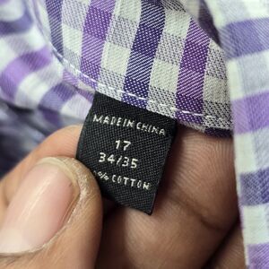 John Varvatos Men's Purple Check Lightweight Cotton Long Sleeve Size 17 34/35