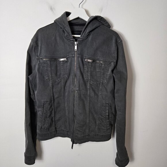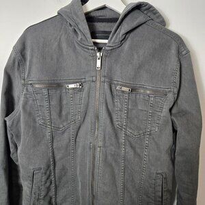 John Varvatos Men's Size M Scott Denim Hooded Shark Gray Trucker Jacket
