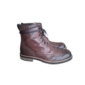 John Varvatos Mens size 13M Brown Leather Brogue Lace-Up Wingtip Casual Boots Preppy Office Church Normcore Career Wear Luxury