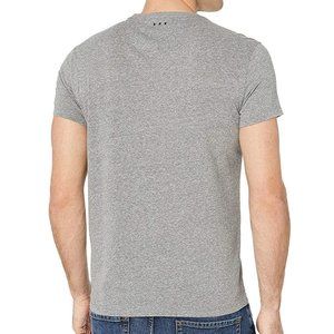 More Music Less Hate message graphic on front chest Premium banded crew neck tee shirt Varvatos 3 stars printed at back collar Short sleeves; Straight hem Machine wash cold; 37% polyester/33% cotton/30% viscose Color is 073 Hematite Grey