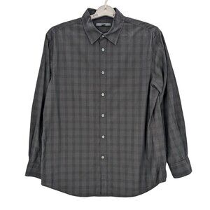 John Varvatos Plaid Button Up Shirt Men Size L Check Woven Office Quiet Luxury