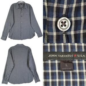 John Varvatos Shirt Long Sleeve Button Down Blue Plaid Men's Size Large L