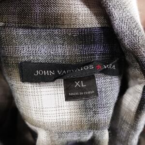 John Varvatos Shirt Mens XL Black Gray White Plaid Flannel Long Sleeve Cotton